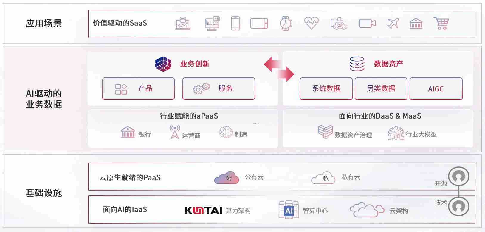 数字时代,,,围绕企业数字化转型的关键要素,,,365钱包数码开创性的提出数云融合战略和技术体系框架,,着力在云原生、、、数字原生、、、、AI原生和信创产业上架构产品和服务能力,,为处在不同数字化转型阶段的快消零售、、汽车、、金融、、医疗、、、政企、、教育、、运营商等行业客户提供泛在的敏捷IT能力和融合的数据驱动能力,,,构建跨界融合创新的数字业务场景和新业务模式,,,助力企业级客户建立面向未来的核心能力和竞争优势,,,全面推动社会的数字化、、智能化转型升级。。