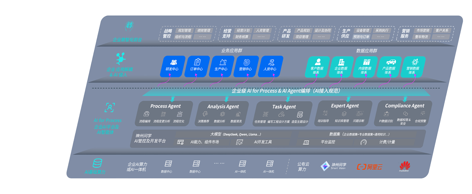 端到端的一站式AI工作空间深度融合了从企业战略规划到日常经营的全流程业务板块,,定向解决车企内部领域多、、部门多、、、、链条长、、场景碎片化等难题,,,,支持车企快速构建以AI为核心的生产力写作体系,,,实现任务执行与AI能力的无缝集成与交互